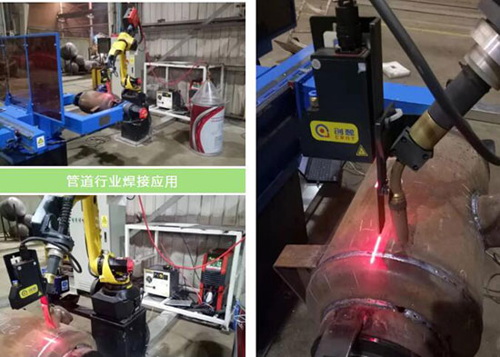 專機(jī)焊縫跟蹤應(yīng)用于管道行業(yè) 激光焊縫跟蹤引導(dǎo)焊槍精準(zhǔn)尋位焊接。