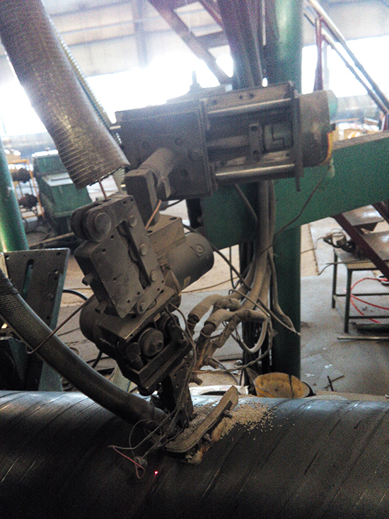 板材經(jīng)過清銑,遞送,板邊預(yù)彎等工藝后,先進性內(nèi)焊,使管子成形,然后進行外焊加固焊道,內(nèi)外焊合稱為成型工藝。焊接工人一般負責事項比較多。包括:焊道位置調(diào)整,擺橋,量管徑,調(diào)整焊接電流電壓,如果機組運行不穩(wěn)定,現(xiàn)場工人往往會手忙腳亂。而且人工成本高,易疲勞,用工量大的問題一直存在。這個時候,一臺能代替人工解決螺旋管焊接難題的自動化設(shè)備是您的不二之選。