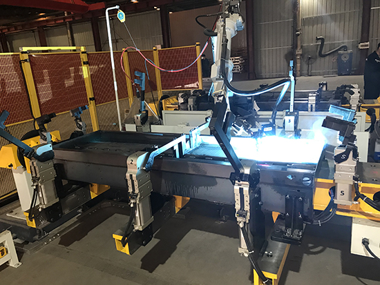 前后板的焊接主要用的是機(jī)器人搭配激光跟蹤系統(tǒng)的尋位功能就可以解決;側(cè)板主要以長(zhǎng)焊縫為主,主要用到的是機(jī)器人搭配焊縫跟蹤系統(tǒng)和外部軸協(xié)同的實(shí)時(shí)跟蹤功能。目前這些解決方案我們創(chuàng)想都是可以實(shí)現(xiàn)的。
